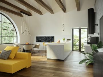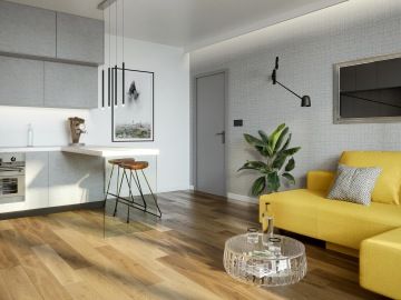 Klientka chtěla novou kuchyni v níž ale byla i špatná dlažba, která plynule přecházela do haly, a tak si uvědomila, že jen výměnou kuchyňské linky nezíská krásný nový vzhled interiéru, který si přála...