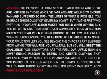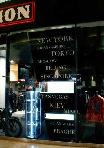 Značkový obchod AFFLICTION vznikl v prostorách po původním salonu krásy, který byl schodištěm propojený do horního patra s kadeřnictvím. Po stavební stránce bylo nemožné se schodiště v obchodním centru zbavit, proto jsme ho využily jako display pro figuriny. Tato stavba byla náročná z důvodů nutnosti dodržet spoustu technických a bezpečnostních požadavků jako jsou EPS, sprinklery, dále se nám pod sádrokartonovým stropem vlnila spousta vzduchotechniky a dalších rozvodů, což ztěžovalo montáže svítidel.