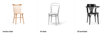 Když jsme hledaly židle, chtěly jsme klasiku - volba tedy byla jasná - TON. Nejprve jsme chtěly restaurovat různé staré židle, ale nakonec jsme se rozhodly pro úžasné barvy, které měl TON v nabídce a nakombinovaly jsme všech šest barev na tři typy židlí - Ironica, # 14 a křesílko # 25.