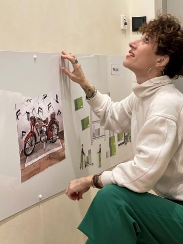 Pro starší děti je na nástěnce puzzle s fotkou veterána Jawy, která je vystavena jako dekorace v sídle společnosti Filipa.