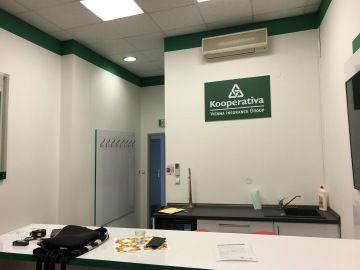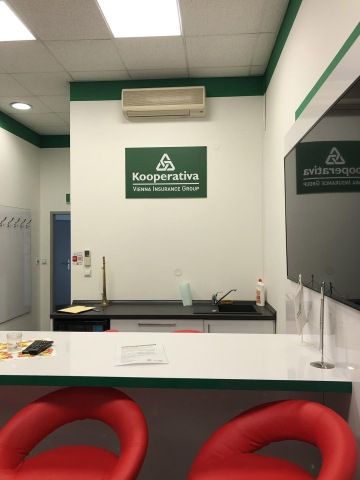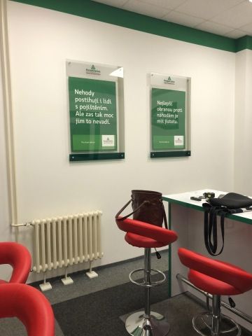 Pro vizuální prezentaci firmy a dekoraci nám zbyla jediná stěna nad betonovými pulty. Chtěly jsme, aby byla nejen dekorativní a ze zajímavých materiálů, ale aby také ve zkratce představila společnost Filipa a.s. a její činnosti. Dekorace je pro dodání reliéfu do prostoru vytvořena ve 3 výškách a ze 3 různých materiálů.
