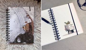 Celý zápisník je koncipován tak, aby se vešel rozměrově dobře do tašky, proto jsou přední a zadní strana vyrobené z tvrdého kartonu na který je ještě upevněná gumička, která udrží zápisník v tašce uzavřený anebo se dát použít i jako záložka.