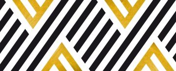 Desky na dokumenty A4 s černou chlopní a bočními hranami, faktura s geometrickým motivem přes celou zadní stranu papíru, vizitky na tvrdém kartonu se zlatým tiskem a černými hranami, dopisní obálka s firemním potiskem a pozvánka ve formátu A6