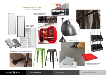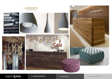 Vytvoříme mood a concept board. Moodboard je taková „nástěnka nálad“ – ukazuje barvy, materiály, textury... zobrazuje atmosféru, kterou chceme v prostoru vytvořit. Concept board ukáže už konkrétnější směr, jak budou prvky, barvy a nábytek spolu fungovat v celku. Poté, co klient odsouhlasí oba tyto boardy, začneme s vyhledáváním konkrétního nábytku a materiálů do projektu.