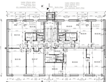 Pro zahájení práce na projektu je potřeba nám předat výkresy v elektronické podobě DVG, PDF.., které vypadají například takto a pokud neexistují prostor se musí zaměřit a výkresy nejprve zpracovat.