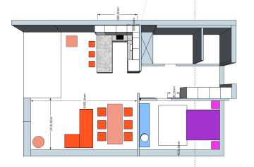 Po odsouhlasení těchto základních dispozic klientem se jednotlivé zařizovací předměty "vytáhnou do 3D hmoty" a vznikne nákres který je již snažší pro orientaci a ve kterém si můžeme detailněji určit konkrétní prvky.
