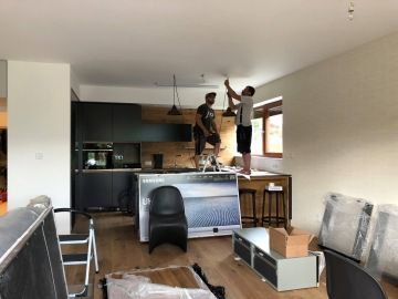 Jsem moc rád, že jsem se ani nepokusil tuto akci provést svépomocí. Bylo hodně věcí, které mi vadily a sám bych neměl nápad jak je vyřešit, např. nehezké schodiště v obýváku a nenapadlo by mě, že vestavnou skříní zabijem dvě mouchy jednou ranou, kdy mi vznikne prostor pro děti a jejich hračky a vybouráním dveří, které stejně nepoužíváme propojíme obývák s halou.