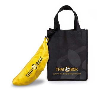 logo pro pouliční fastfood a vzhled interiéru pro nové vegetariánské thajské bistro a následně restauraci. Koncept otevřené kuchyně podporuje transparentnost a autenticitu, vychází z upravené thajské kuchyně, což znamená pouze čerstvé suroviny, žádné klasické hotové omáčky, zcela bez masa a s využitím ekologických obalů při odvozu. Vizuální styl vychází z tohoto obchodního konceptu a používá klasické zlaté / žluté thajské barvy na jednoduché černé barvě pozadí. Písmo loga je moderní bezpatkové, ale mírně zvlněné, čímž lehce odkazuje na klasickou thajskou abecedu. Symbol je také odvozený od thajské klasiky - květu, ale zde v minimalistické verzi a může být také viděn jako jasmínová rýže v krabici.